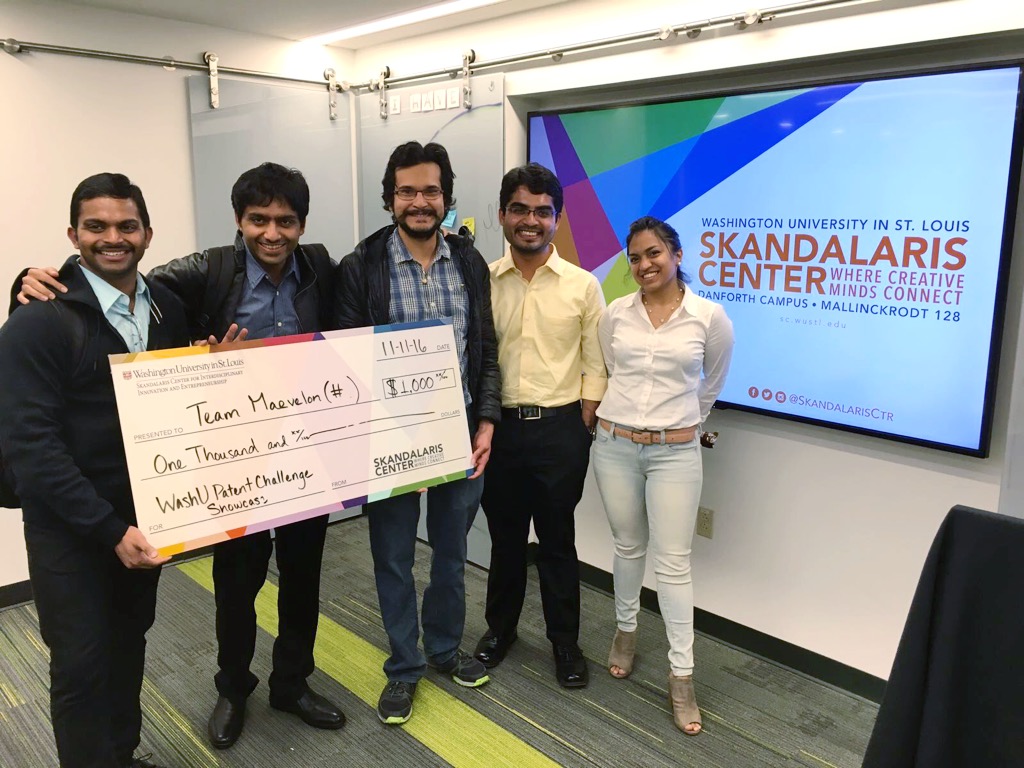 The five members ofย Team Marvelon represented four different schools at WashU and met through a variety of social and academic circles. Sonali Gupta, who is completing a JD fromย Washington University School of Law this year, delivered her team’s presentation.