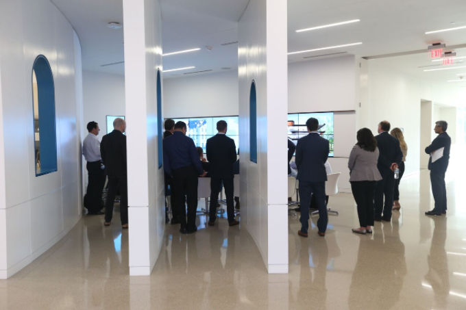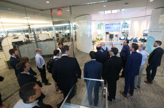The delegation was welcomed at an opening dinner at Gamlin Whiskey House, with remarks provided by St. Louis Mayor Lyda Krewson. The next day began with a tour of two health innovation centers in St. Louis: Mercy Virtual Care Center and Express Scripts’ global headquarters.