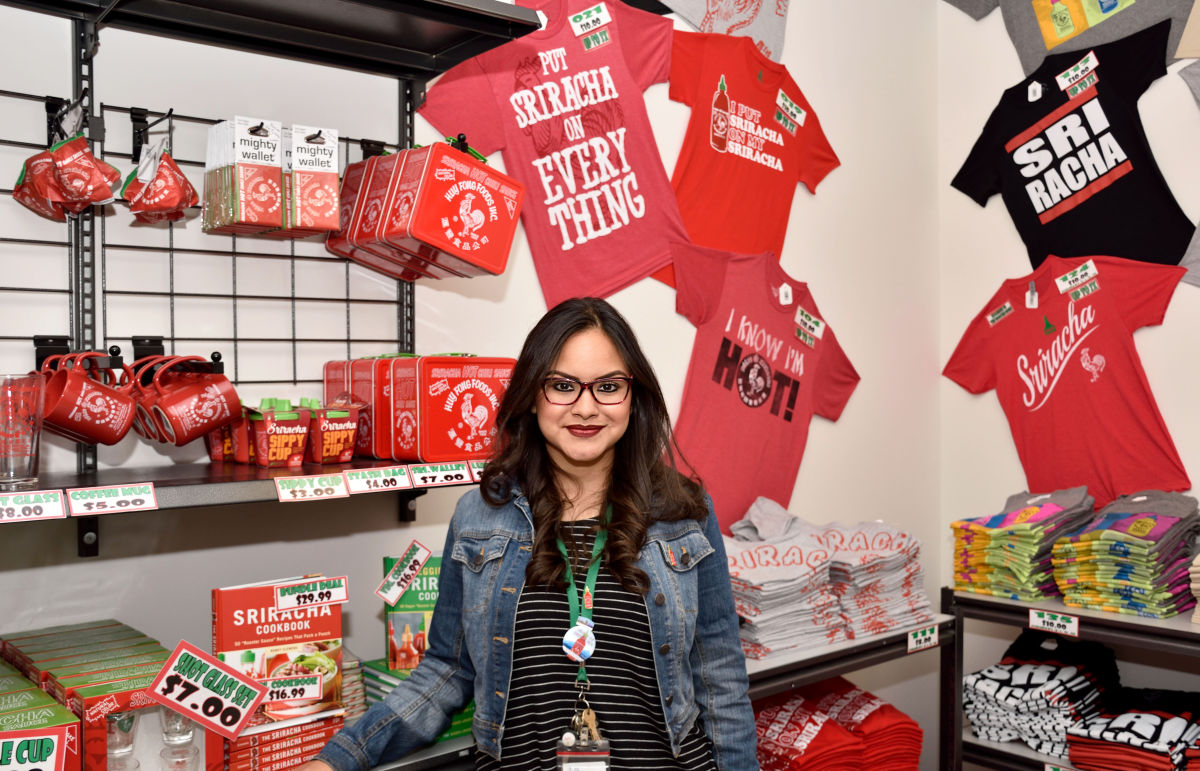 Huy Fong Food eventually opened The Rooster Room Online Store, an online store for fans a little more than a year ago. All merchandise—from snacks (Sriracha croutons, anyone?) to T-shirts and Sriracha Halloween costumes—is sold at cost both online and in the brick-and-mortar. “It was only right to open up online for our guests that weren’t able to make it out to our factory so they too have the opportunity to enjoy the merchandise through our online shop,” says Martinez.